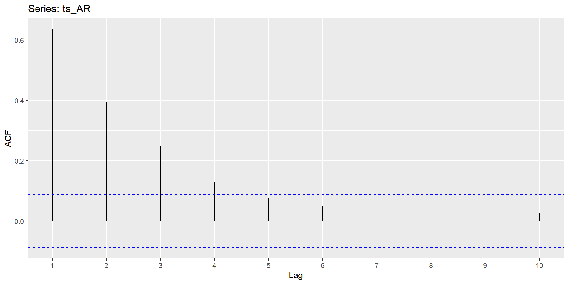 Autocorrelation Function (ACF) \[\begin{equation} \rho_{k}=\frac{\operatorname{Cov}\left(Z_{t}, Z_{f+k}\right)}{\sqrt{\operatorname{Var}\left(Z_{f}\right)} \sqrt{\operatorname{Var}\left(Z_{t+k}\right)}}=\frac{\gamma_{k}}{\gamma_{0}} \end{equation}\]