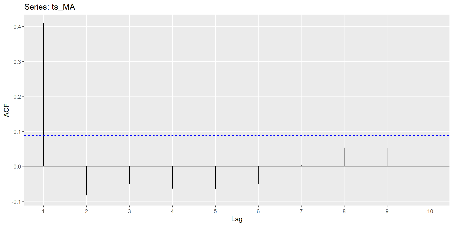 Moving Average (MA) \[ y_{t}=\mu+u_{t}+\phi_{1} u_{t-1}+\phi_{2} u_{t-2}+\ldots+\phi_{t} u_{t} \]