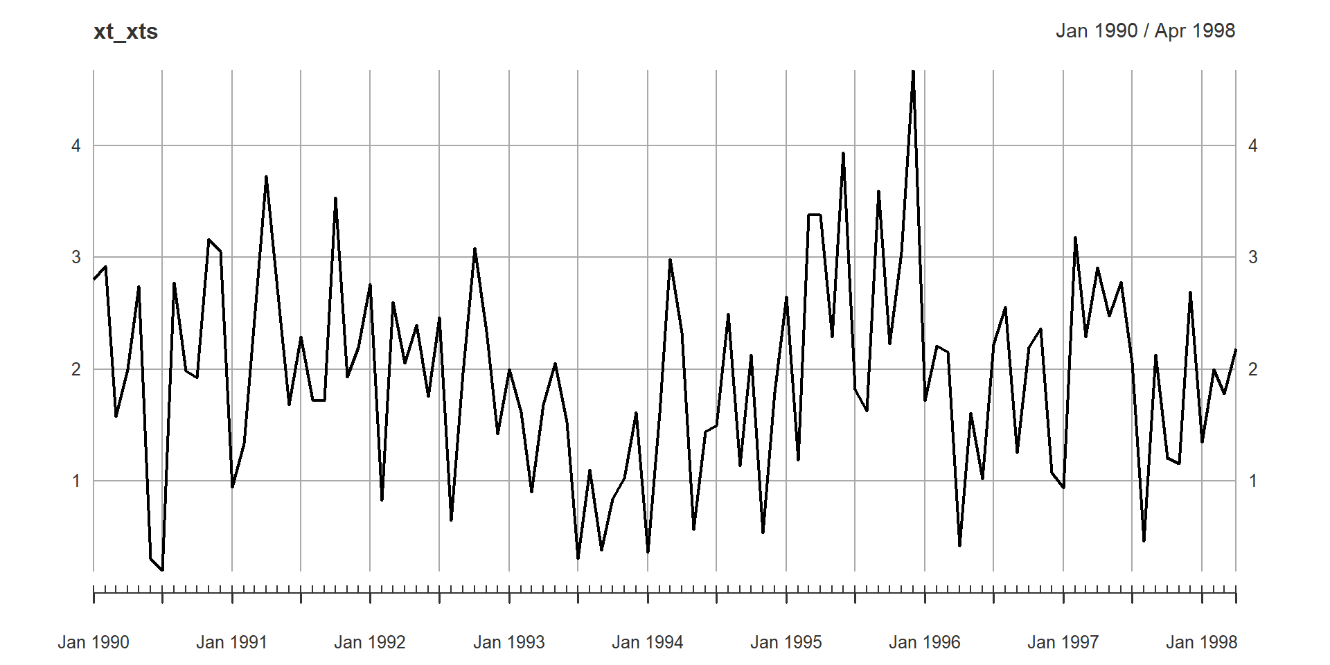 R dataframe is not a time series object by defaulsxts, zoo, tsibble etc., to handle time series data# A tibble: 12 × 2
